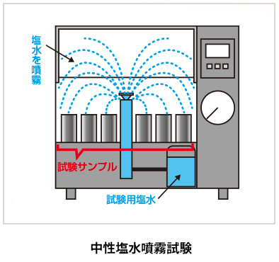 腐食の原因となる使用環境を想定し、塩水噴霧試験など複数の厳しい試験を実施しております。