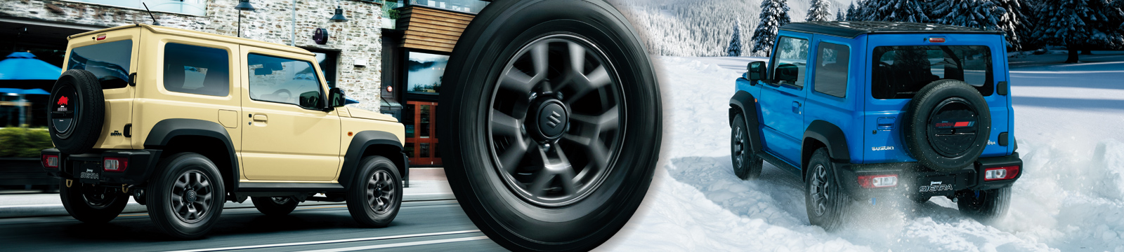 スズキ純正アルミホイールとスタッドレスタイヤを組み合わせることで、一年を通してスズキ製品とともにカーライフをお楽しみいただけます。