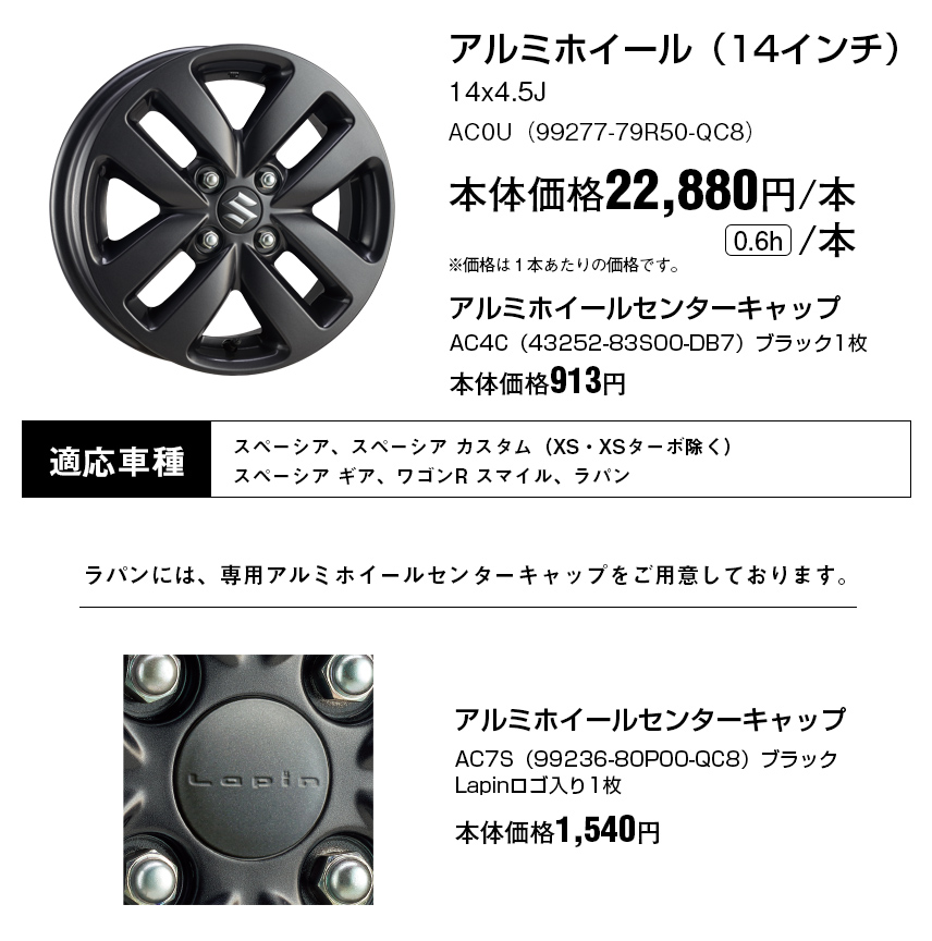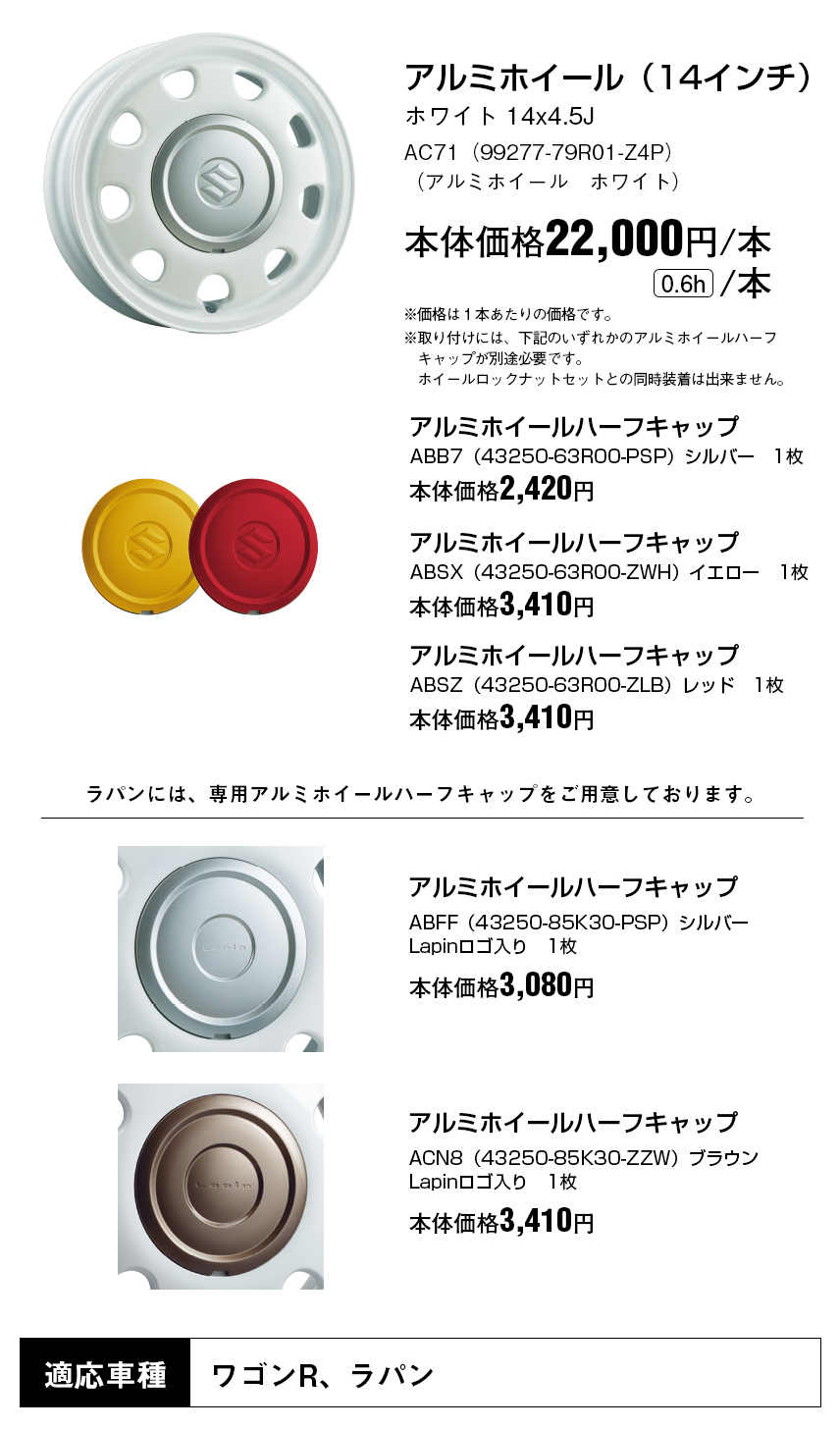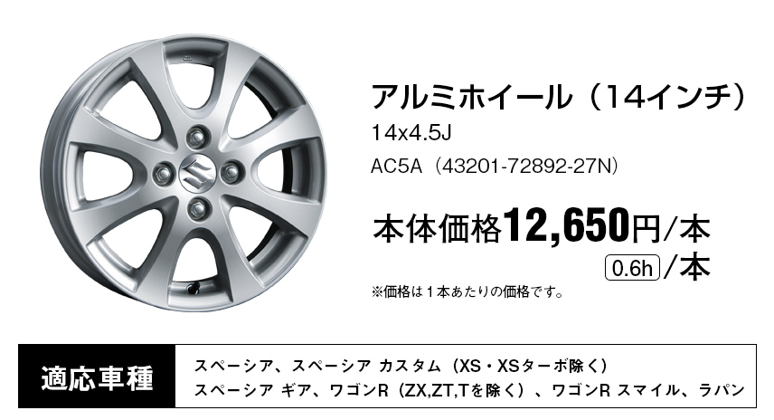 あなたのカーライフを一層引き立てるスズキ純正アルミホイールを是非ご使用ください。