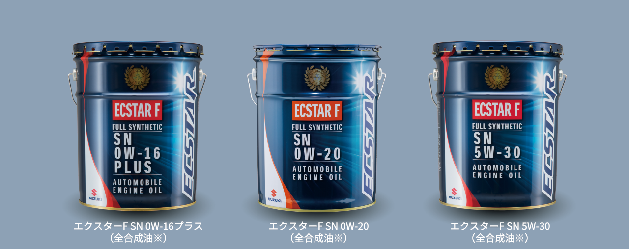 スズキ車の性能を最大限に引き出すため、『スズキ純正エンジンオイルECSTAR F(エクスターエフ)』のご使用をおすすめいたします。