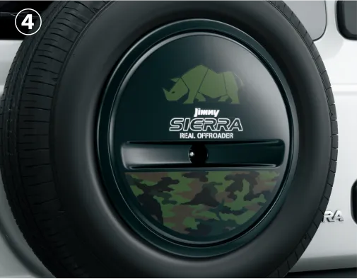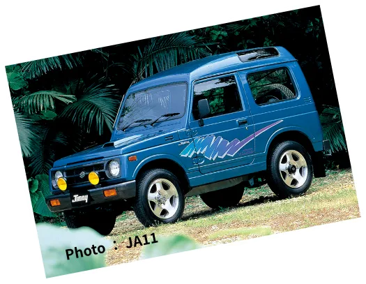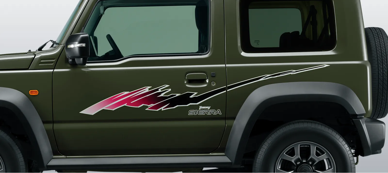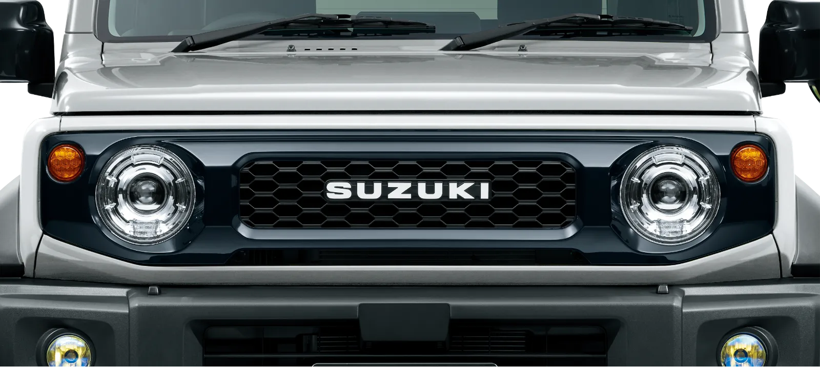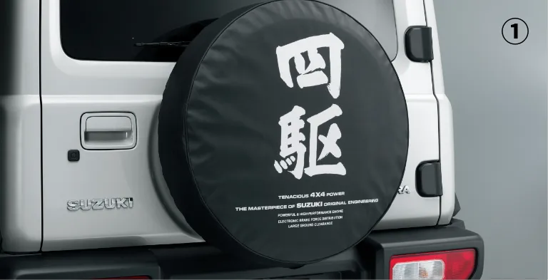 ①四駆 ②サイ ③新旧車両フェイス ④旧型Jimnyロゴ「TOUGH & NEAT」