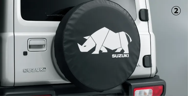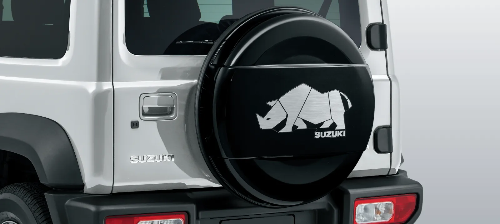 固く分厚い皮膚と鋭く伸びた角、恐竜を思わせるフォルム。アフリカのサバンナなどに棲息するサイは、普段はのんびりと暮らしていても、縄張りや仲間を守るためにはどんな相手に対しても臆することなく猛スピードで突進する勇敢さをもっています。そんな本格四駆の堅牢さと力強さを彷彿とさせるサイをモチーフとしたサイマークが生まれたのは1981年。鎧のような皮膚をまとい、重心低く突進する姿をデフォルメしたデザインは、瞬く間に世界中のジムニー愛好家の間で浸透。ジムニーのシンボルとして定着し、親しまれています。