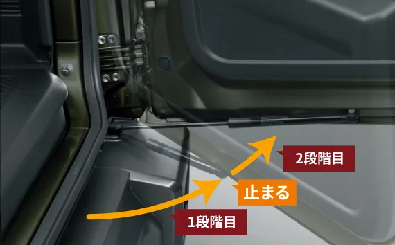 全閉〜1段階目 約30°〜42°前後 全閉〜2段階目 約74°前後