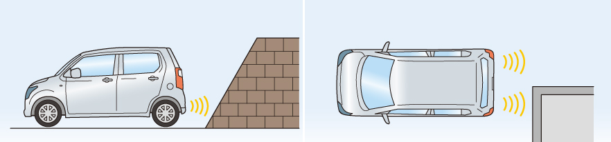 前方または後方約3m以内で壁などを検知したときにランプとブザーでお知らせします。