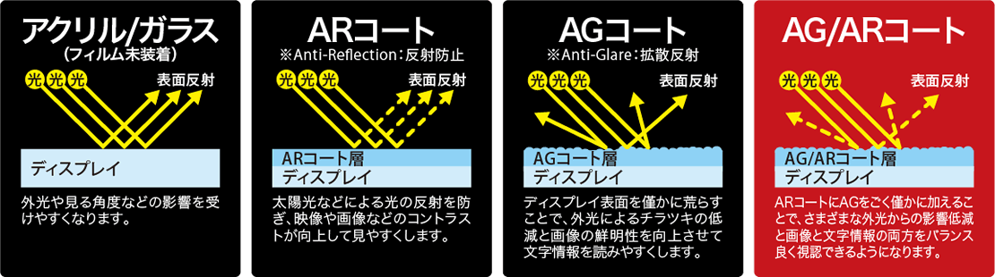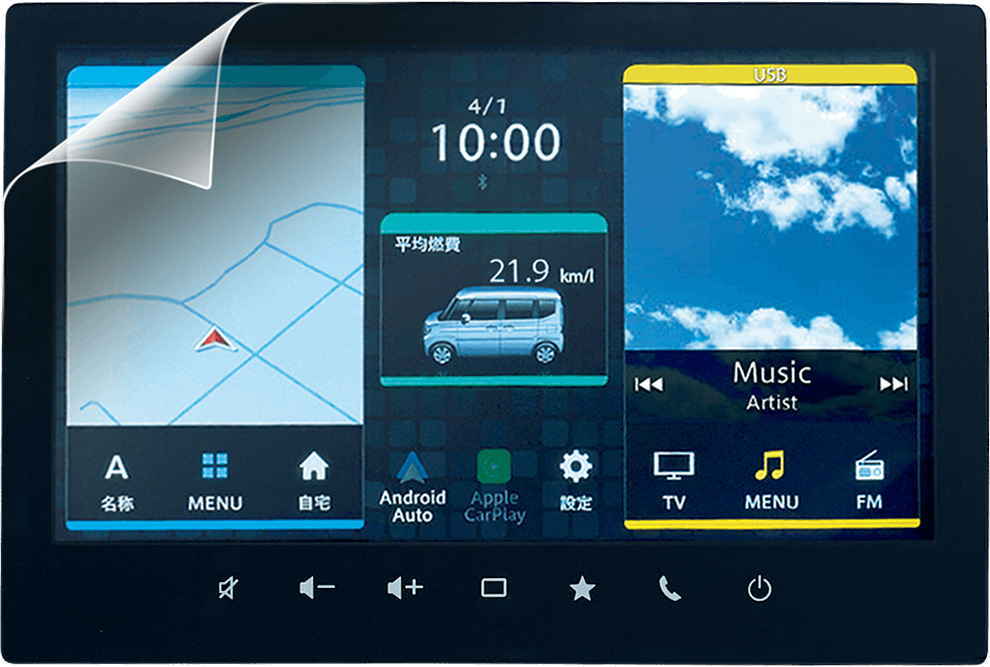 DEFFではスマートフォンの分野でのノウハウを活かし、AGとARを組み合わせる事で車載用保護フィルムとして理想的なバランスを実現しました。