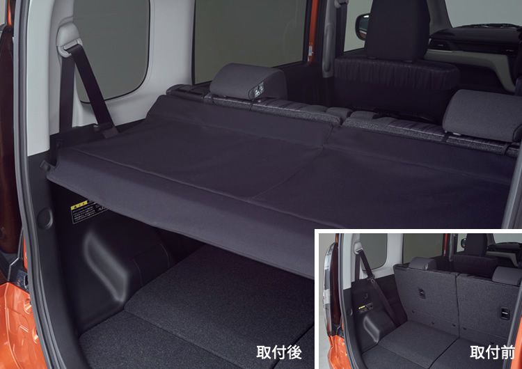 - ※ラゲッジマット(ソフトトレー)、ラゲッジマット(フルカバータイプ)、スペアタイヤ固定キット(4WD車用)と同時装着はできません。