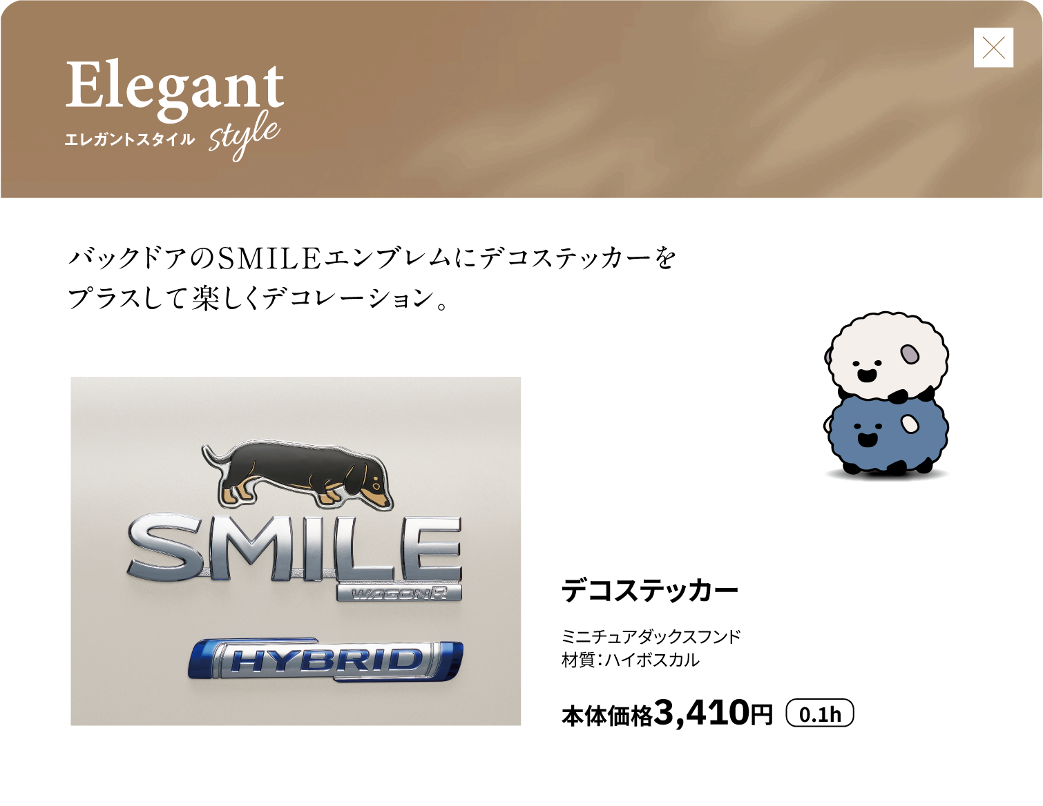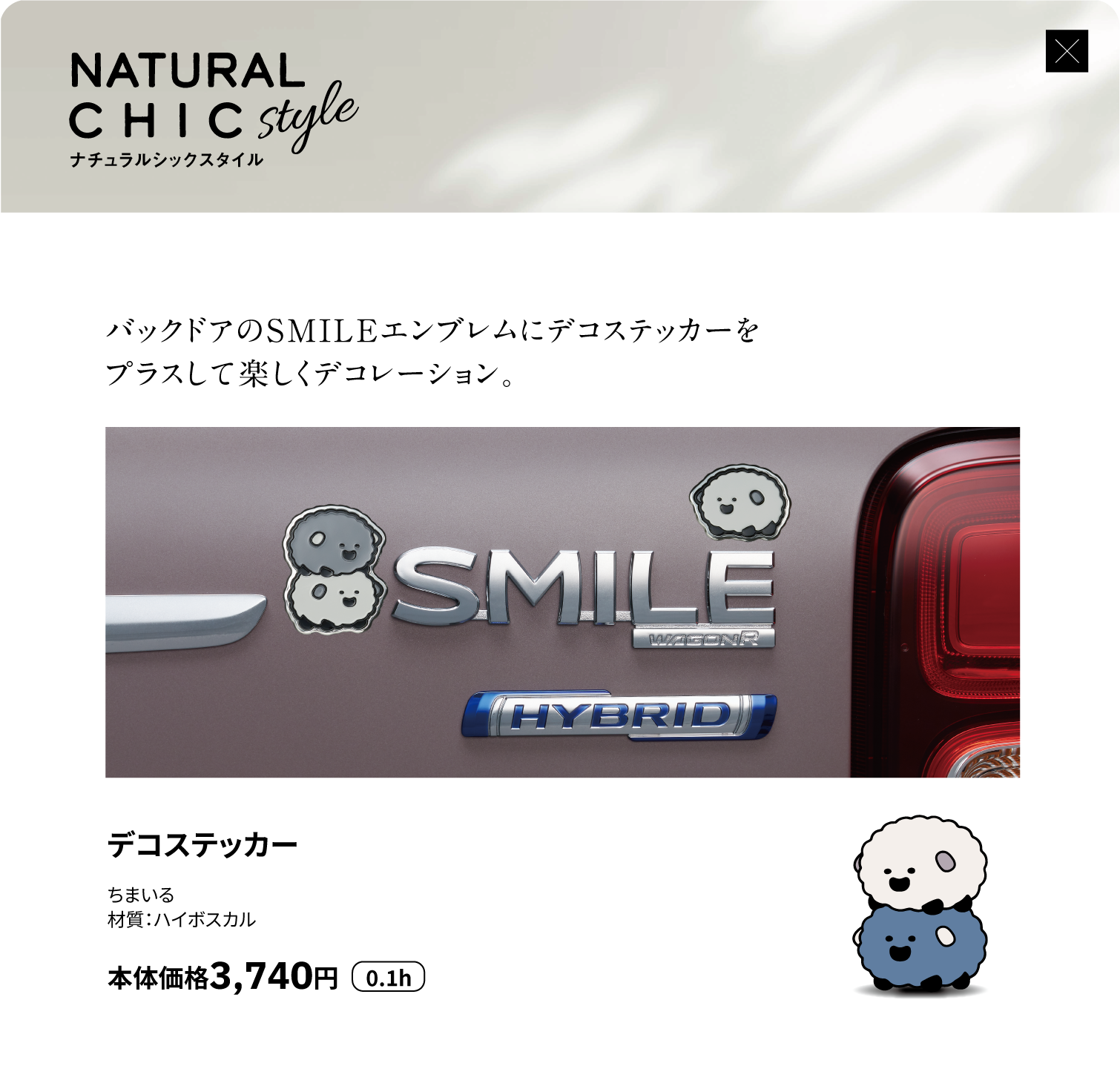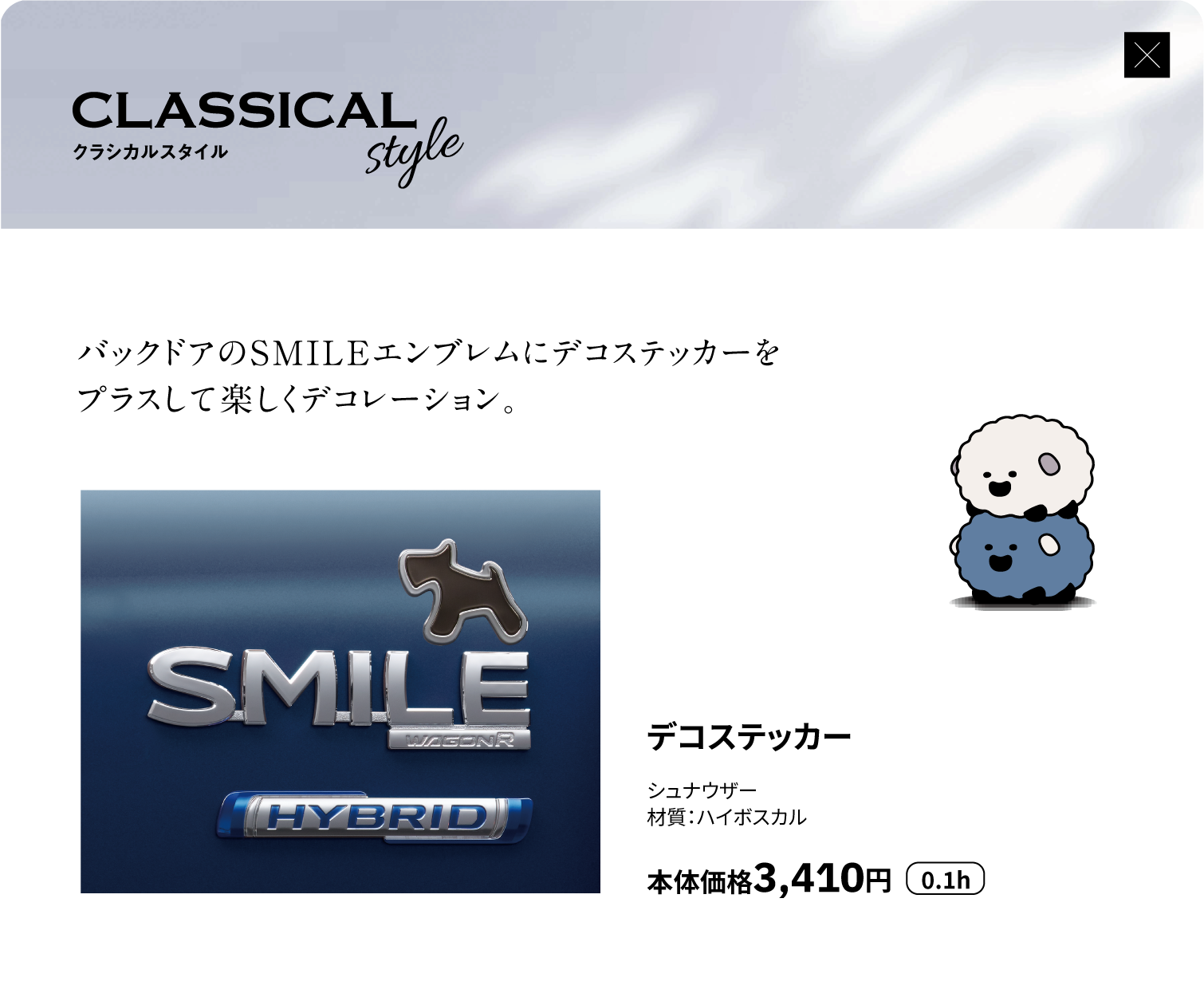 フードデカール、ピラーデカール、サイドデカール(ピンストライプ)、サイドデカール、フロントアンダーガーニッシュ、サイドアンダーガーニッシュ、リヤアンダーガーニッシュ、アルミホイール(14インチ)、アルミホイールセンターキャップ