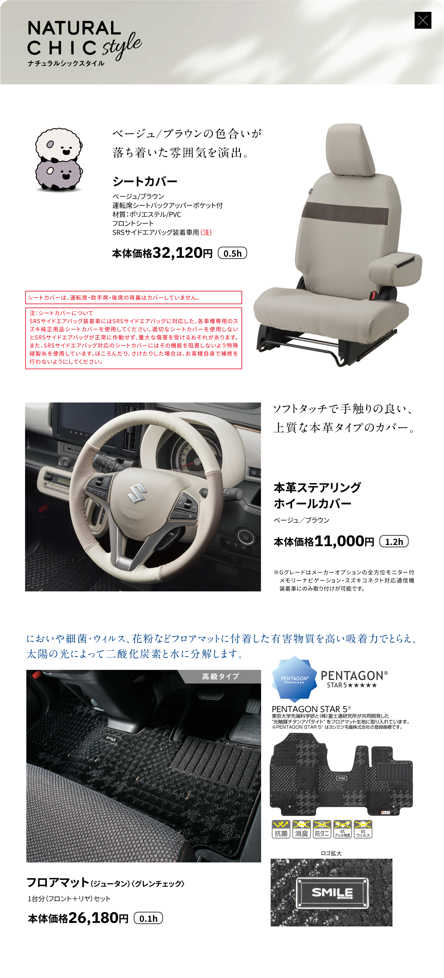 シートカバー、本革ステアリングホイールカバー、フロアマット(ジュータン)