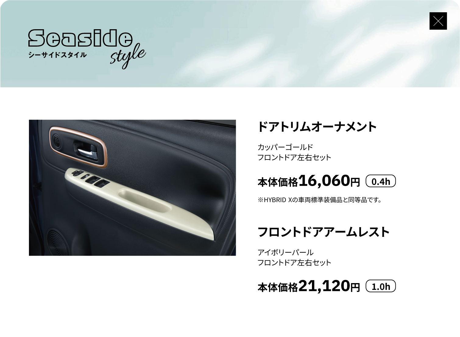 ドアトリムオーナメント、フロントドアアームレスト